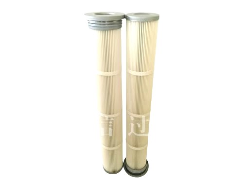 濾筒的品種較多,有細(xì)而長與粗而短之分。細(xì)長濾筒(如φ≤160,L=1~2m),其褶(如45褶)間空隙大、夾角大,褶少而淺,過濾面積比同徑同長的濾袋大2~5倍,清灰易而效果好;適用于濃度≥15g/m粉塵的過濾除塵,過濾風(fēng)速0.6~1.2m/min。粗短濾筒(如φ350,L=0.66m)直徑大、長度短、褶多(120~350褶)而深、褶間空隙小,過濾面積大,較之同徑同長濾袋面積大14~35倍,適于場地面積小、空間小的地方布置;但因褶角小,粉塵易積聚,難于清灰,適于濃度≤5g/m粉塵的過濾除塵,過濾風(fēng)速不宜>0.6m/min。